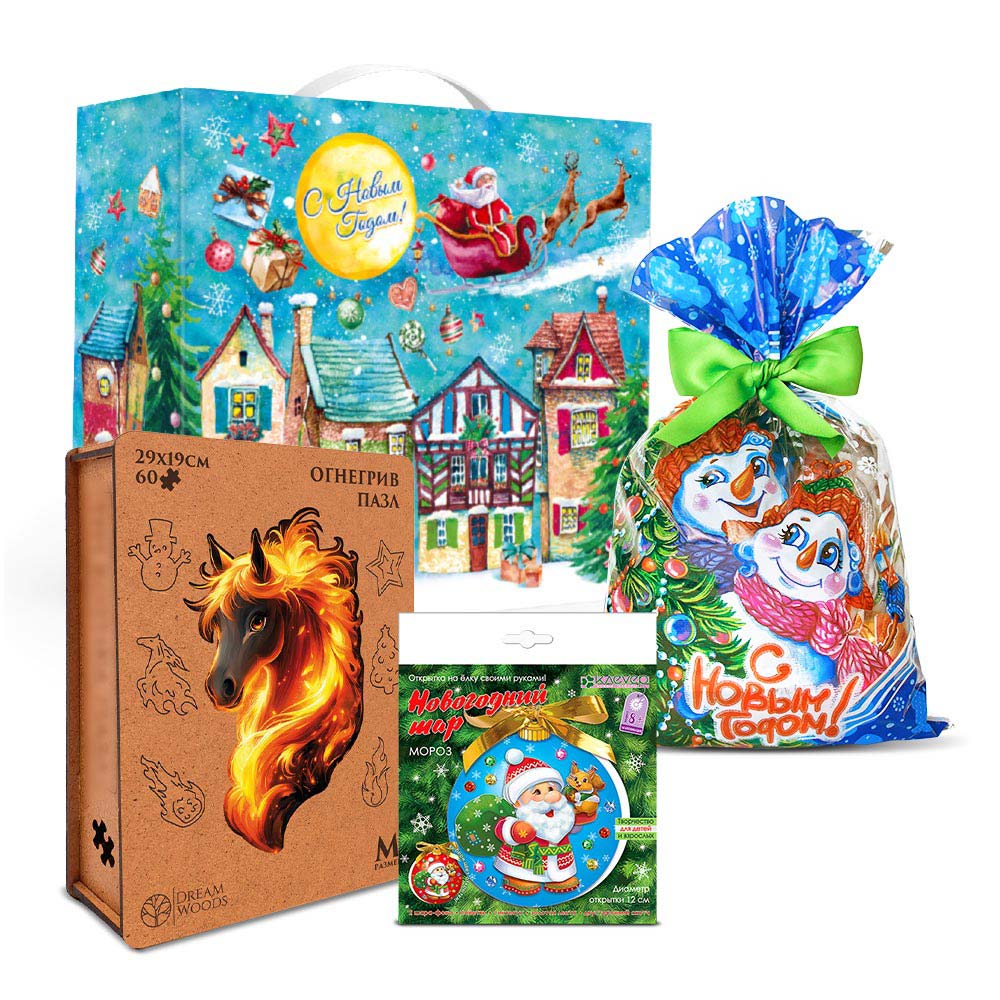 В составе набор для творчества, пазл и конфеты 300г Стандарт: