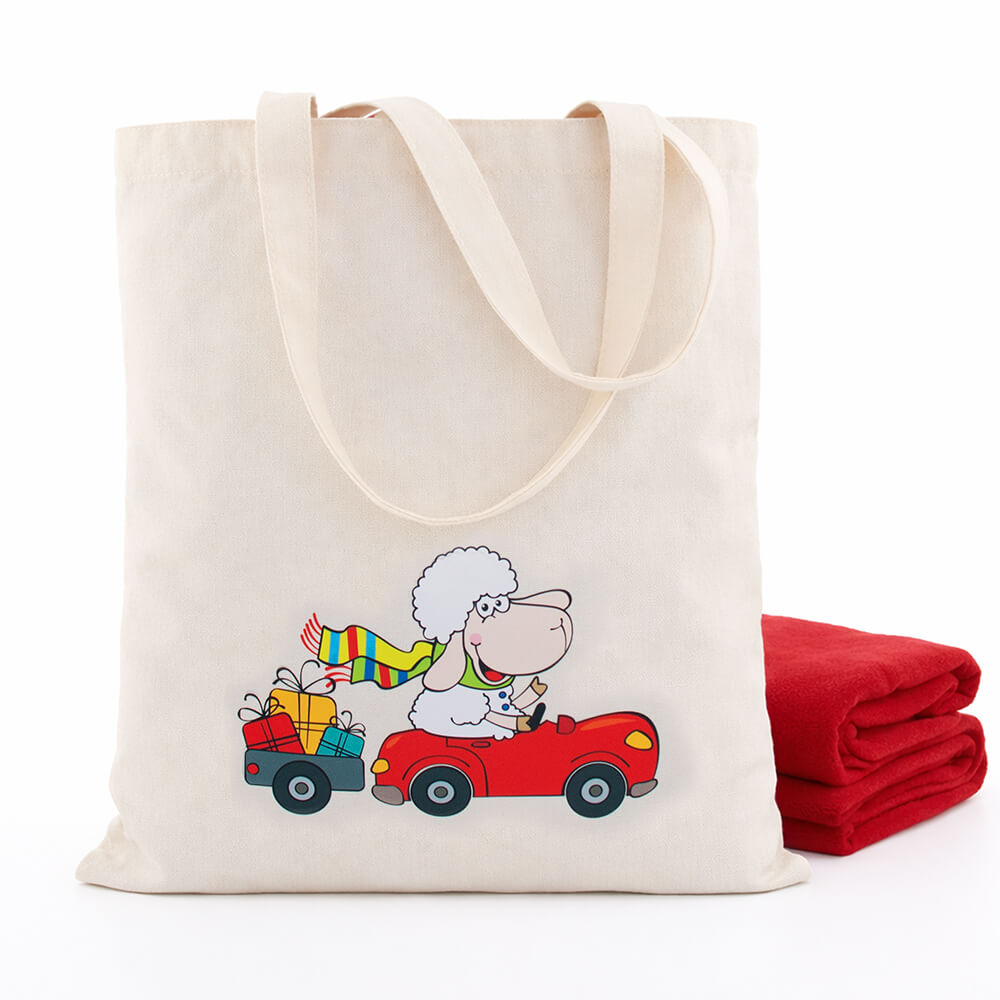 Набор "Праздник" в новогоднем шоппере с мягким пледом и мешочком со сладким подарком 300г Люкс.